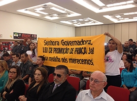 Militares realizam manifesto durante solenidade para cobrar aprovação da Lei de Promoção de Praças Em solenidade realizada na manhã de hoje (27) no Centro de Convenções, alusiva aos 179 anos da criaç…