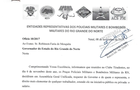 Associações protocolam ofício ao governador do Estado As Associações Representativas de Praças Policiais e Bombeiros Militares do RN ratificaram ao govern…